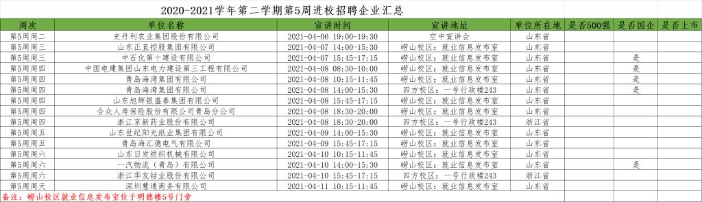 2020-2021学年第2学期第5周,进入我校进行宣讲招聘的企业名单如下,均为涉及经管学院相关专业及不限专业的企业。请广大毕业生同学根据个人情况,按时参加企业宣讲会。