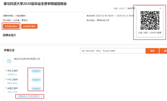 2.企业预定展位。本次网络招聘会共设置展位1000个,参会招聘单位可于即日起至2月24日期间登录“bat365官方官网2020届毕业生春季网络招聘会”(http://job.qust.edu.cn/largefairs/view/id/719/domain/qust)专区,或扫描网络招聘会二维码(见附件2)申请预定展位,发布招聘信息,学校将根据企业规模性质、与学校专业匹配度等择优审核,与学校建立合作关系、长期到校招聘的企业优先。学校审核通过后,企业招聘信息即可在本次招聘会网络平台显示。本次招聘会将同步生成企业微信二维码,以方便在微信端操作。特别提醒的是因网络招聘,请企业按平台提示要求,完整清楚的填写企业简介及招聘岗位信息,以免造成信息失真。