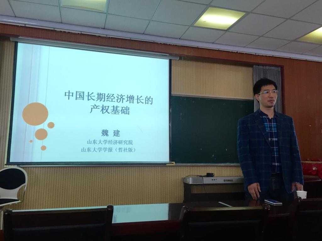 5月4日下午,山东大学魏建教授专题讲座在经管学院419会议室顺利举行,部分教师代表及全体研究生参加了此次讲座,讲座由副院长杨友才教授主持。