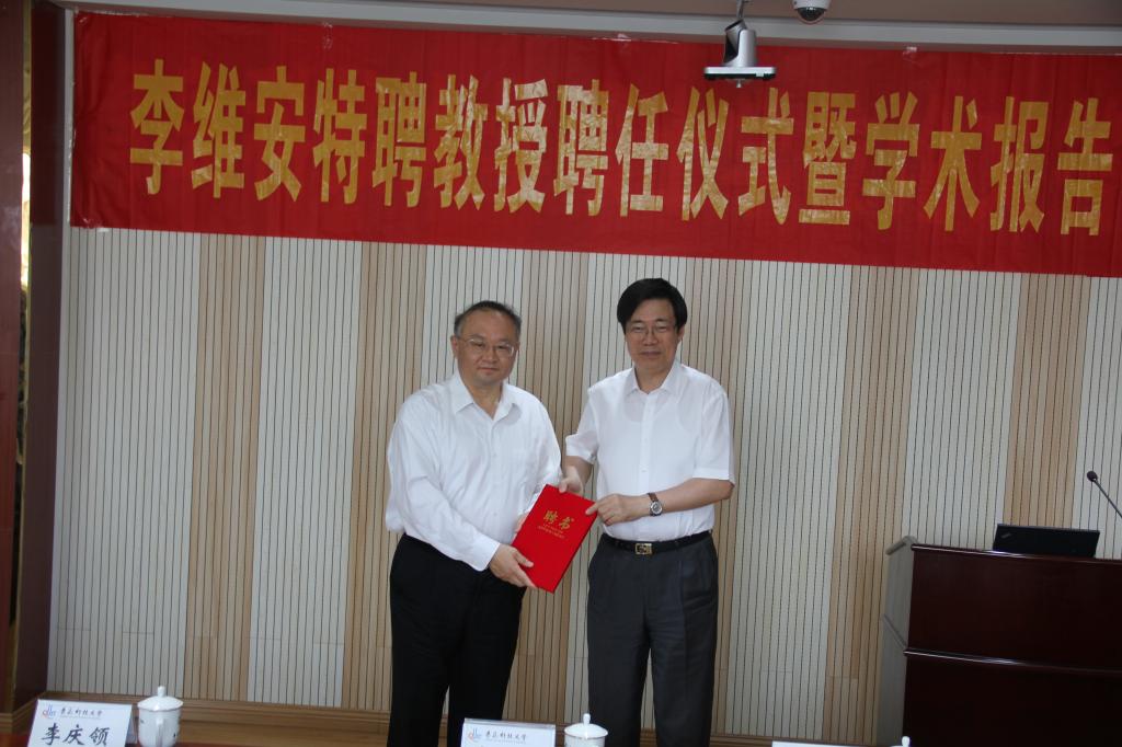 6月2日下午,天津财经大学校长李维安特聘教授聘任仪式暨学术报告会在经管学院511隆重举行。校党委书记刘兴云出席仪式并 向李维安 颁发聘书。会议由副校长李庆领主持。校办、规划处、研究生处、经管学院党政领导以及师生代表参加了会议。