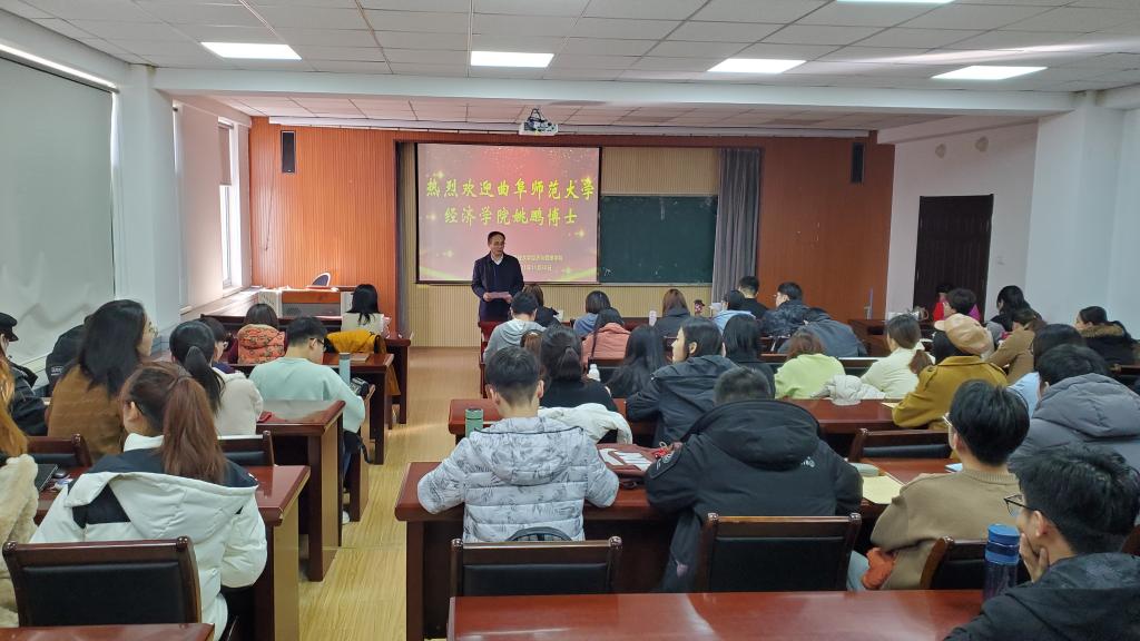 2021年11月30日下午,曲阜师范大学经济学院姚鹏博士在经管419教室以“水资源刚性约束与中国产业转型困境破解”为题,为我院师生带来了精彩的学术论坛报告会。此次论坛由李勋来院长主持。