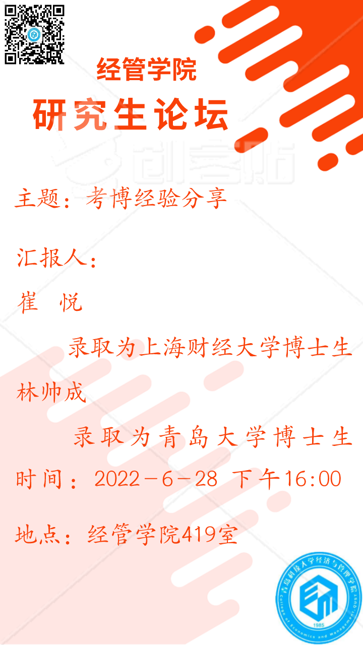 【论坛信息】经管学院研究生论坛--考博经验分享会