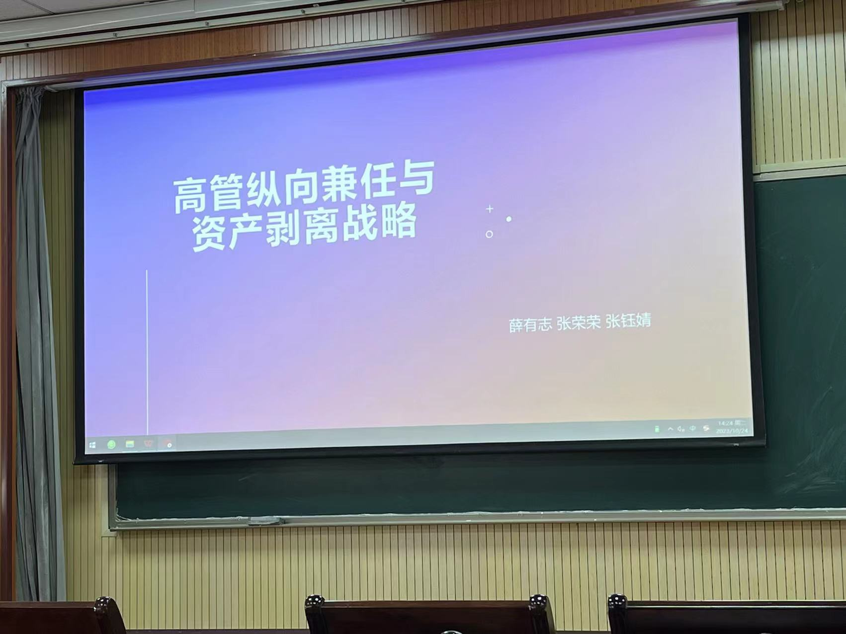 10月24日,bat365官方官网张荣荣讲师在经管楼505作题为“高管纵向兼任与资产剥离战略”的专题讲座。本次讲座由bat365官方官网副院长吕承超主持,学院教师、研究生同学参加此次讲座。