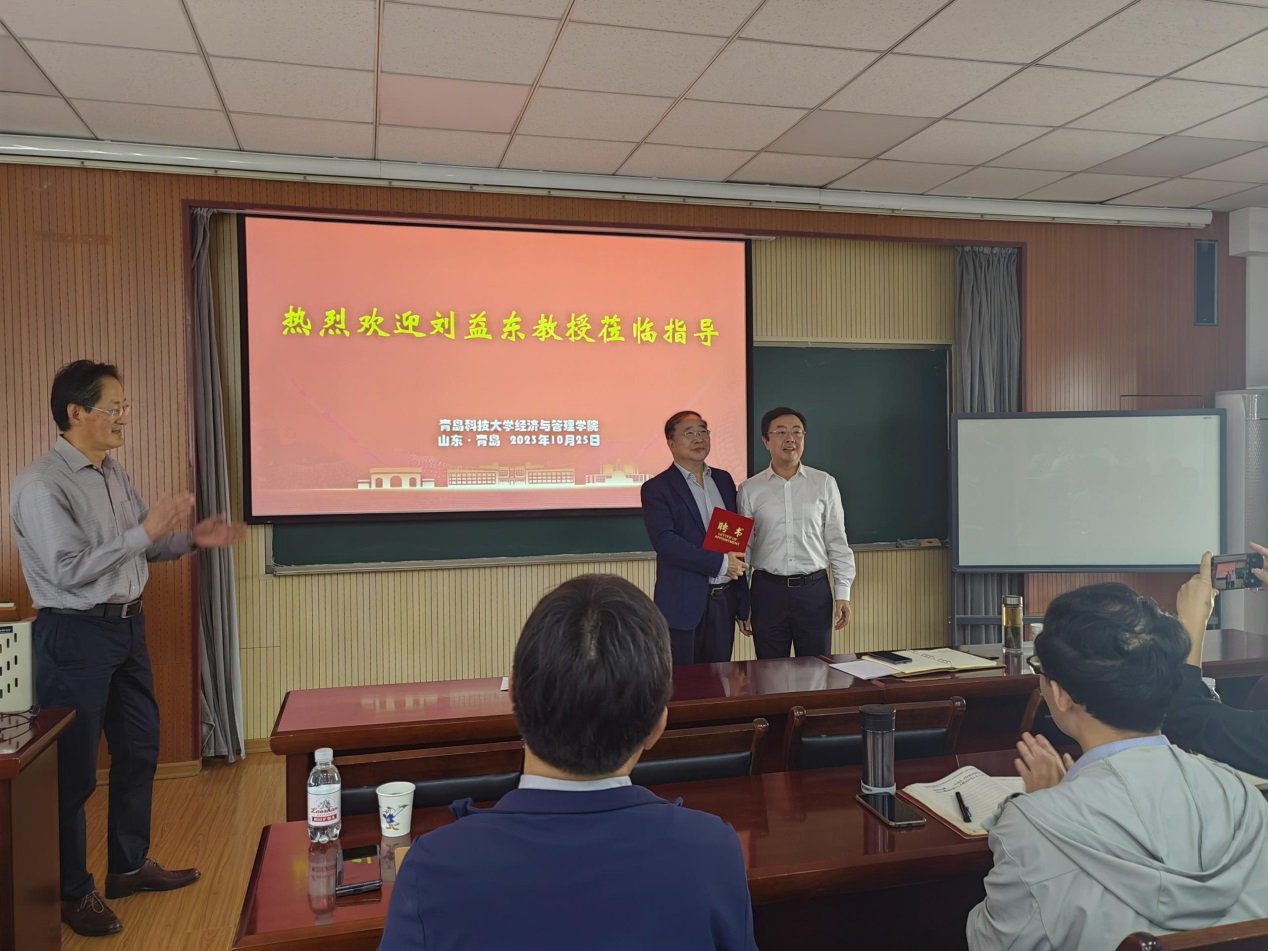 2023年10月25日下午,在bat365官方官网505教室开展了一场精彩绝伦的高端论坛,题目为《挑战和机遇:AI大爆炸引发的人才评价改革与开放教育革命》,邀请中国科学院大学刘益东教授主讲,学院党委书记李德成担任此次论坛的主持,学校党委书记李兴伟也莅临现场指导并为刘益东教授颁发聘书,学院老师和研究生同学参加此次论坛。