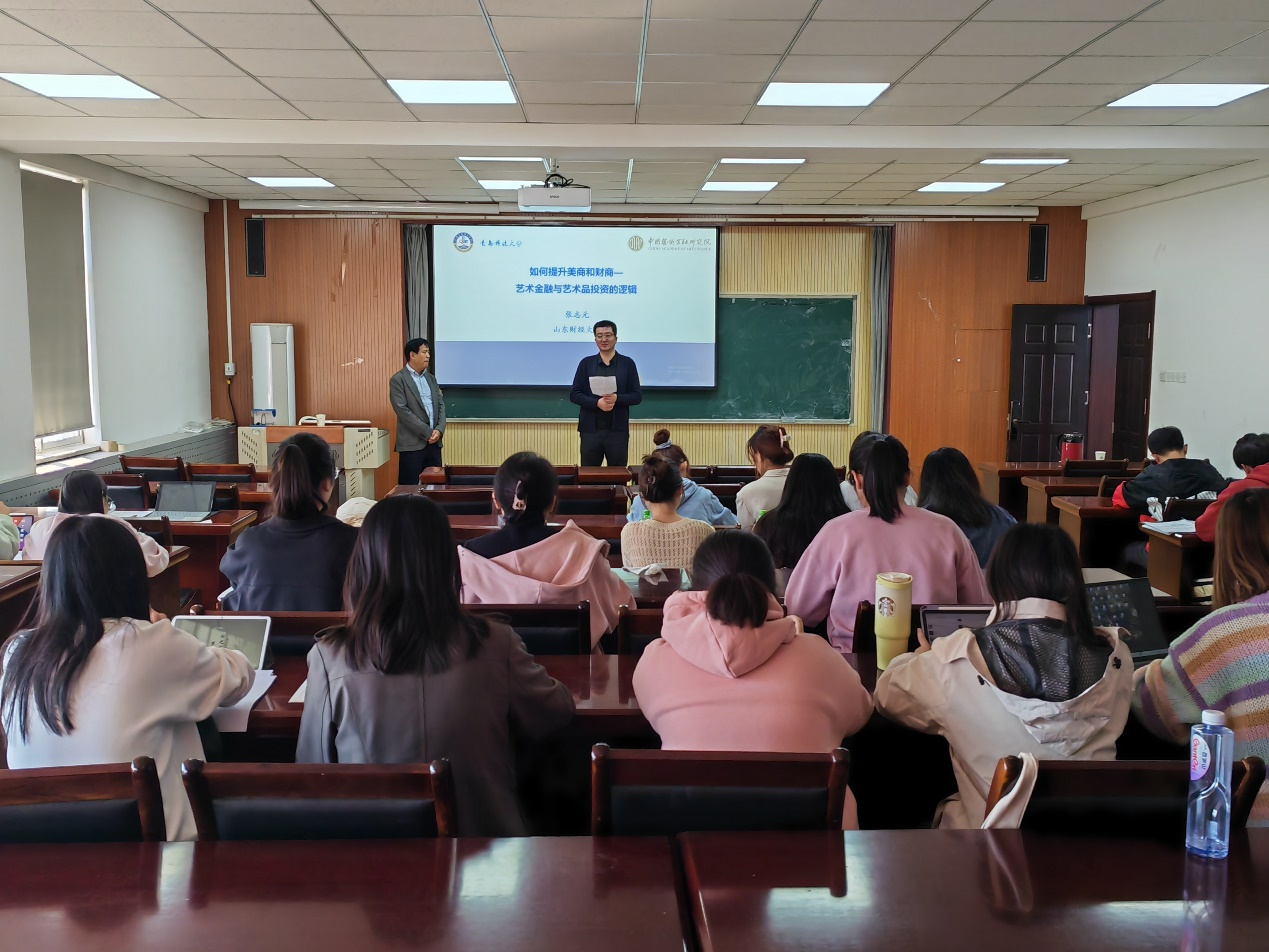 张志元教授首先抛出三个问题引发大家思考,你认为最重要的是什么?你认为什么最值钱?求学求职的初心目的是什么?随后结合习近平总书记对美术艺术、文化产业发展的重要论述,为大家讲解了艺术金融的缘起,艺术生态的投入与产出,艺术与金融的融合,艺术资产如何投资以及投资艺术品如何从零开始。张教授指出,艺术金融是各类围绕艺术品市场主体所进行的资金融通和信用活动,金融赋能艺术品市场有助于盘活优秀文化资产、增强艺术品市场活力,金融与艺术的融合日益紧密,不可分割。张教授为大家讲解了醴泉乡村振兴综合体的探索和实践的案例,并指出中国乡村振兴的实现过程就是发现价值、挖掘价值、提升价值、增厚价值,最终达到共享价值,实现探索与落地。听完本次报告,老师和同学们受益匪浅,并就报告内容提出了一系列问题,张志元教授一一耐心解答。