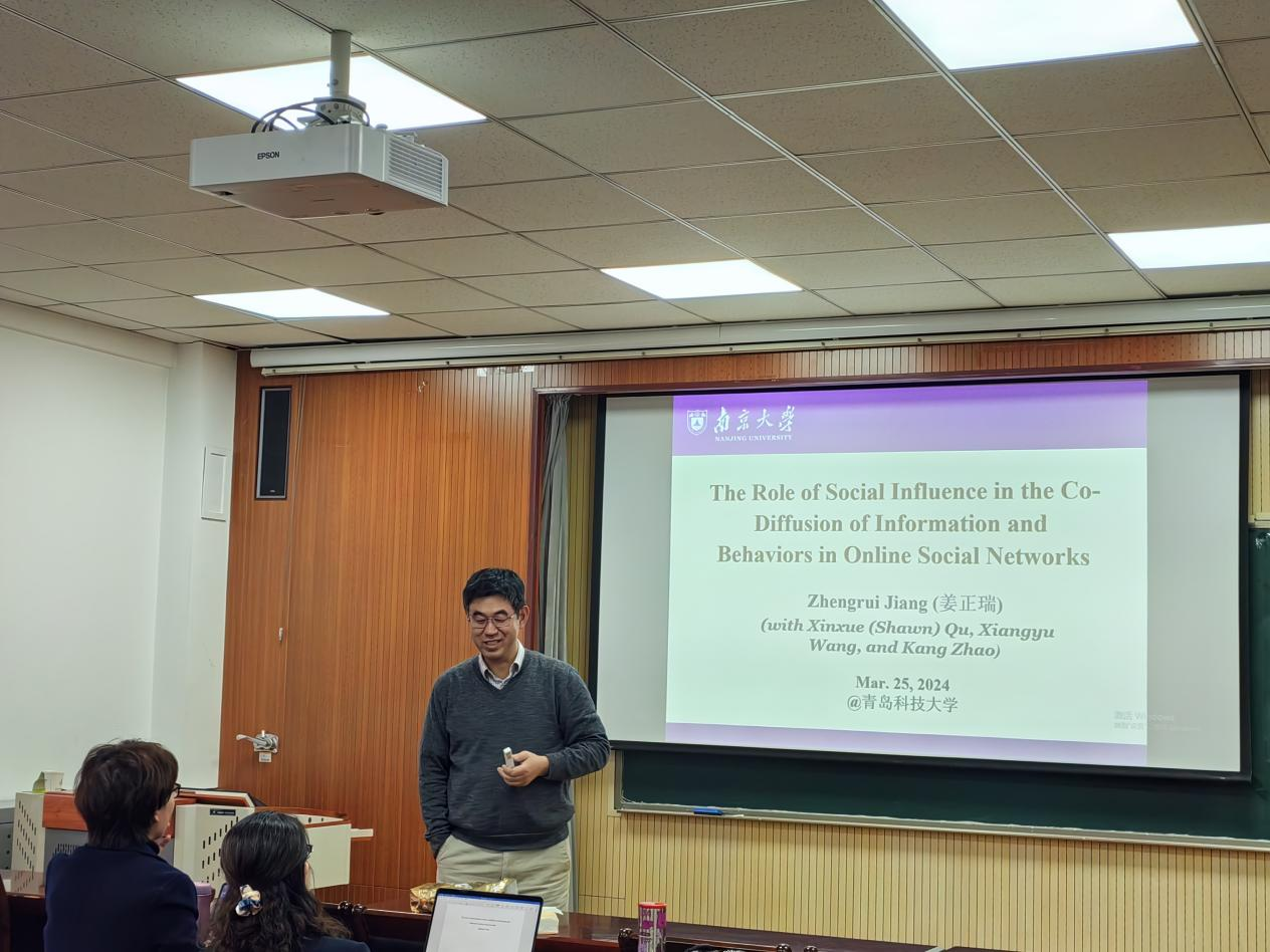 bat365官方官网于2024年3月25日上午9:00,在经管楼505会议室组织开展高端论坛讲座,本次学术讲座邀请了南京大学商学院营销与电子商务系姜正瑞教授为经管学院师生带来讲座分享。讲座由bat365官方官网副院长宫攀老师主持,学院老师和研究生同学参加此次论坛。