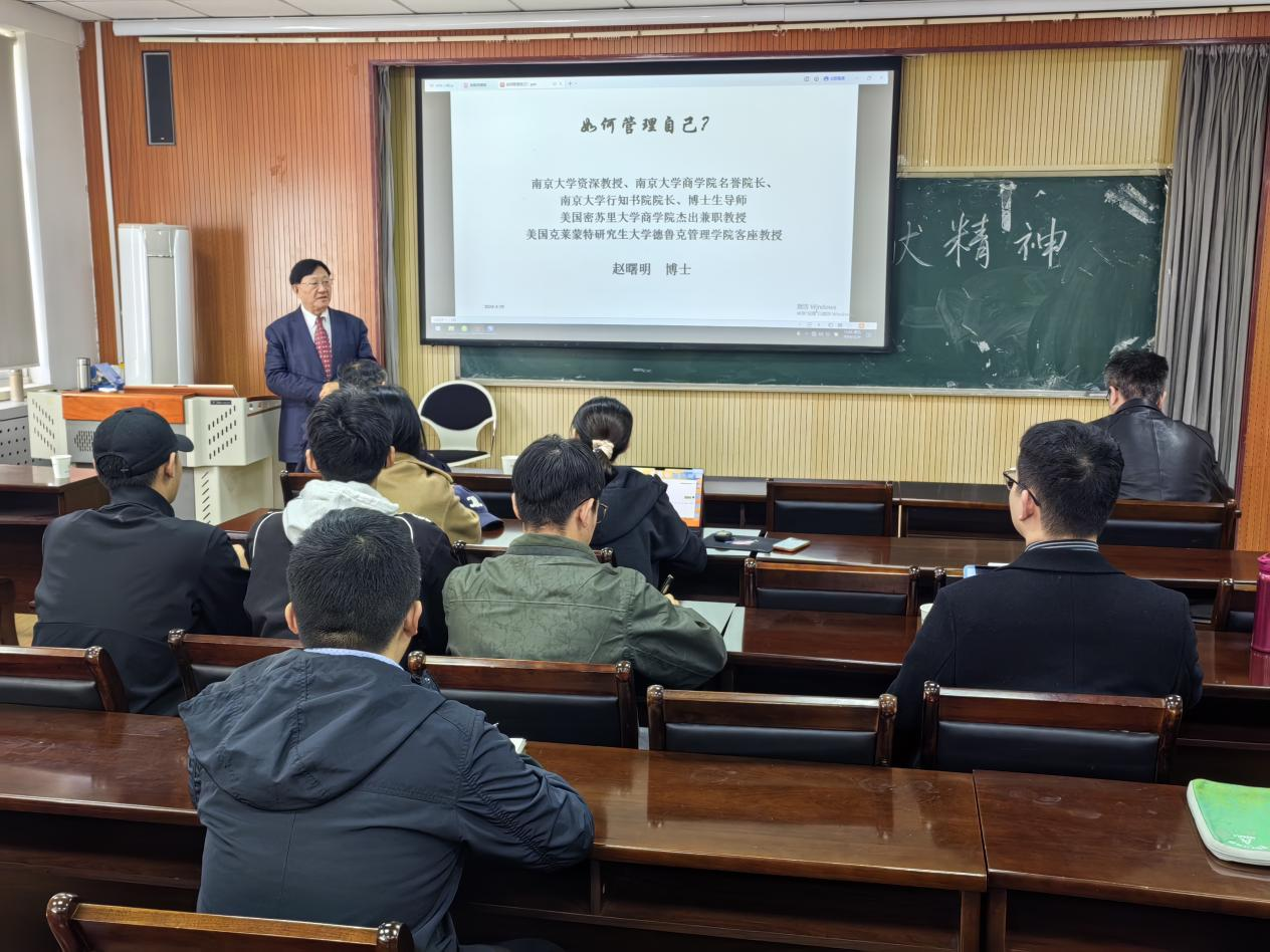 3月29日下午3点,南京大学人文社会科学资深教授、南京大学商学院名誉院长、南京大学行知书院院长赵曙明教授于经管学院419会议室,为我院师生作了题为《如何管理自己》的学术讲座。本次活动由bat365官方官网院长吕承超教授主持,学院老师和研究生同学参加了此次论坛。
