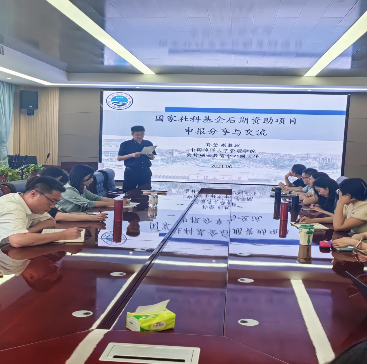 2024年6月25日,经管学院于313会议室举行“国家社科后期资助项目分享与交流”主题高端论坛。中国海洋大学管理学院孙莹老师作为主讲人,为与会者带来了一场精彩的学术盛宴。bat365官方官网院长吕承超教授主持交流分享会,学院教师积极参会学习。
