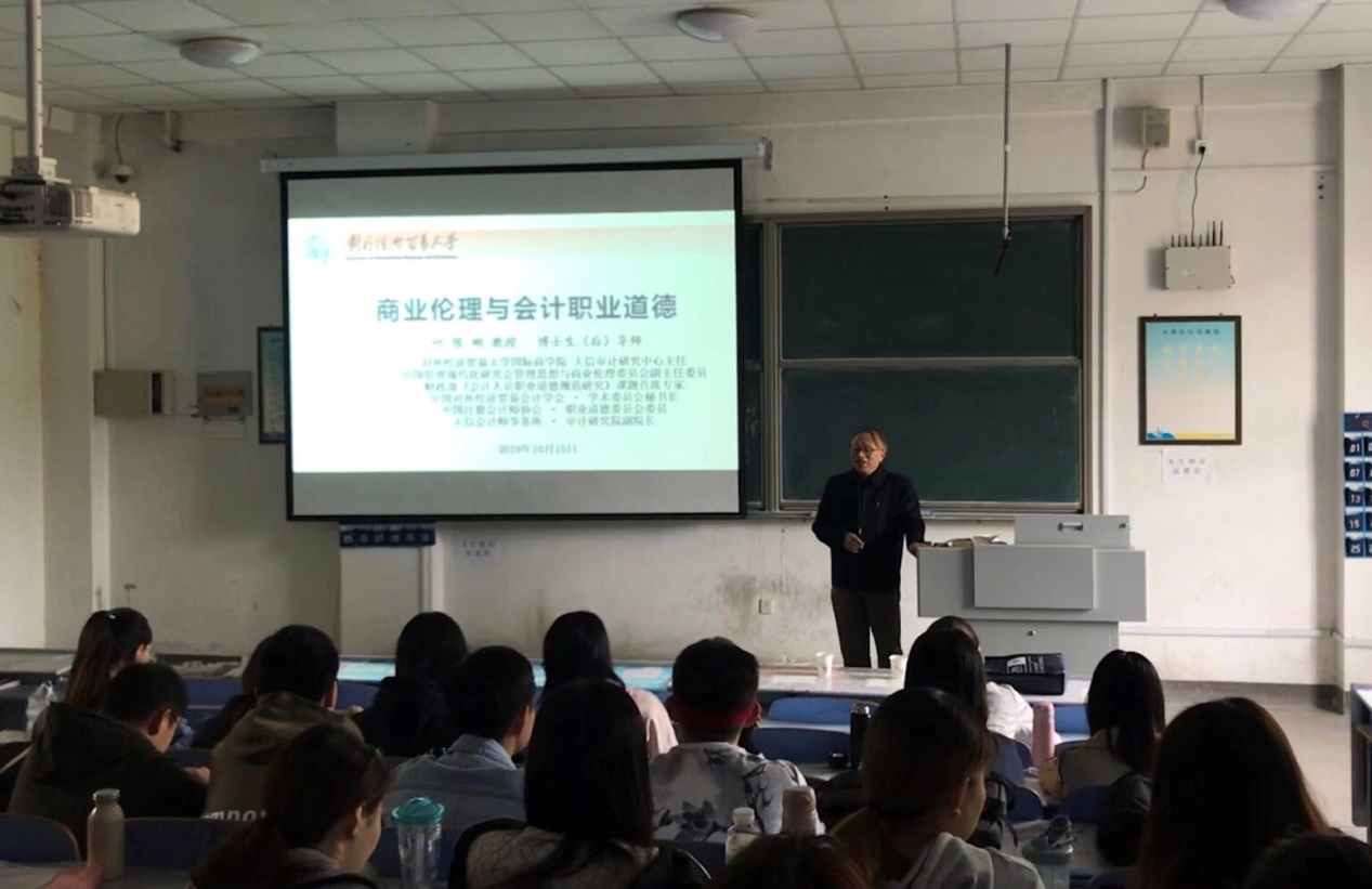 2019年10月16日上午,对外经贸大学商学院现代会计与审计研究所所长、博士生导师叶陈刚教授莅临经管学院,为我院师生举办了题为《商业伦理与会计职业道德》学术报告会。报告会由经管学院MPAcc中心副主任张占贞老师主持,我院部分教师代表以及19级会计专硕研究生参加。