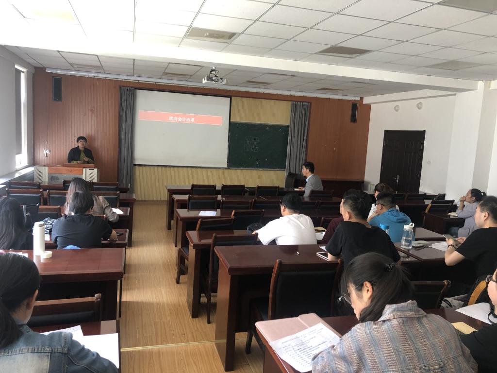 最后,王翠春教授向大家汇报“政府会计改革”。汇报围绕三个要点展开,即为什么要改革、如何改革、改了什么。王教授并向大家着重讲解八个改动要点,包括重构政府会计准则制度体系、统一会计制度、强化财务会计功能、完善预算会计功能、统一基建投资核算、完善报表体系结构以及增强制度可操作性,使得同学们受益匪浅。