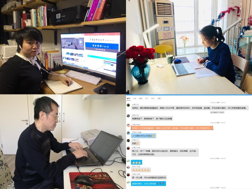 由于多数教师都是首次进行线上教学,面临着平台操作技能不熟练、大面积同时开课网络卡顿的风险。为此,学院积极倡议教师多手准备,提前做好风险应对预案。一是要求教师提前与学生进行模拟试用;二是鼓励教师多试用不同教学平台,以防一方平台堵塞,可及时转换其他平台;三是提议教师提前做好录屏课,以备平台不顺畅之时使用。在做好风险预案的同时,全体教师积极进行线上教学经验的交流共享,相互帮助,及时解决疑难问题。在全体教师的不懈努力下,开学第一周线上教学工作全面顺利展开,经管学院第一周线上开课106门,其中直播85门,非直播21门,外地线上授课8门。