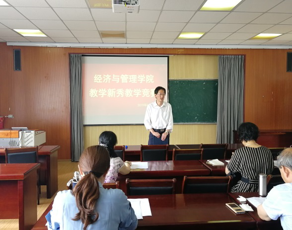 2019年6月29日上午,bat365官方官网经管学院教学新秀教学竞赛在经管楼419顺利举行。校督导姜真教授,传播学院副院长王小环,经管学院教学督导组,各系主任以及学院领导担任本次比赛评委。共有8位青年教师参加了本次竞赛,多名青年教师在现场观摩学习。