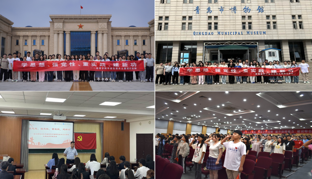 经管学院结合学习贯彻习近平新时代中国特色社会主义思想主题教育工作,深入贯彻“学思想、强党性、重实践、建新功”的总要求,举办内容丰富、形式多样的理想信念教育,教育引导毕业生坚定前进信心,努力成为有理想、敢担当、能吃苦、肯奋斗的新时代青年。6月14日、15日,学院组织开展“学思想、强党性、重实践、建新功”毕业生党员最后一课主题教育活动,主题教育包括“四个一”系列活动,即致毕业生党员的一封信、一次专题党课、一次重温入党誓词、一次毕业合影。全体毕业生党员前往中国人民解放军海军博物馆、青岛市博物馆开展主题党日活动,追寻红色踪迹,深刻感受历史赋予我辈青年的责任与使命,毕业生辅导员寄语全体党员,共同上好“最后一课”,进一步增强毕业生党员的责任意识和身份意识,重忆入党初心、勇担时代大任。6月15日,学院积极承办《奔赴年轻的“战场”——2023届毕业生思政课》,用音乐讲述党史,用歌声礼赞党恩,以“音乐+思政”的形式,将逐梦青春、追求卓越、砥砺前行等思政元素融入其中,引导学生树家国情怀,许下“与时代共鸣、与祖国同行”的铮铮誓言。